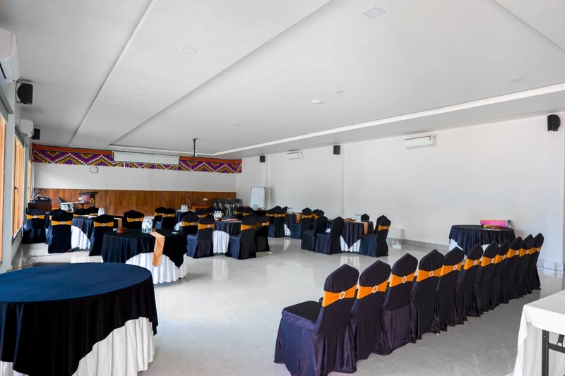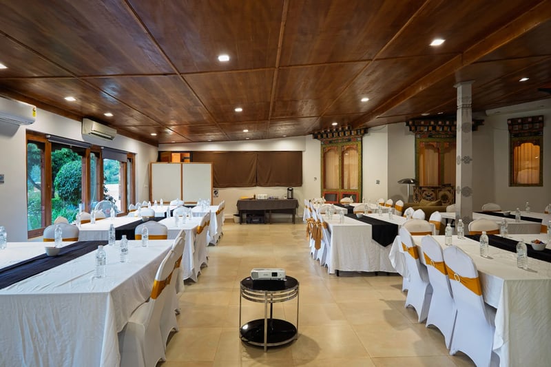 | Tshokhang Hall | 60 – 100 | Theatre, Classroom, Banquet | Projector, basic PA, stage, podium, Wi-Fi, AC |